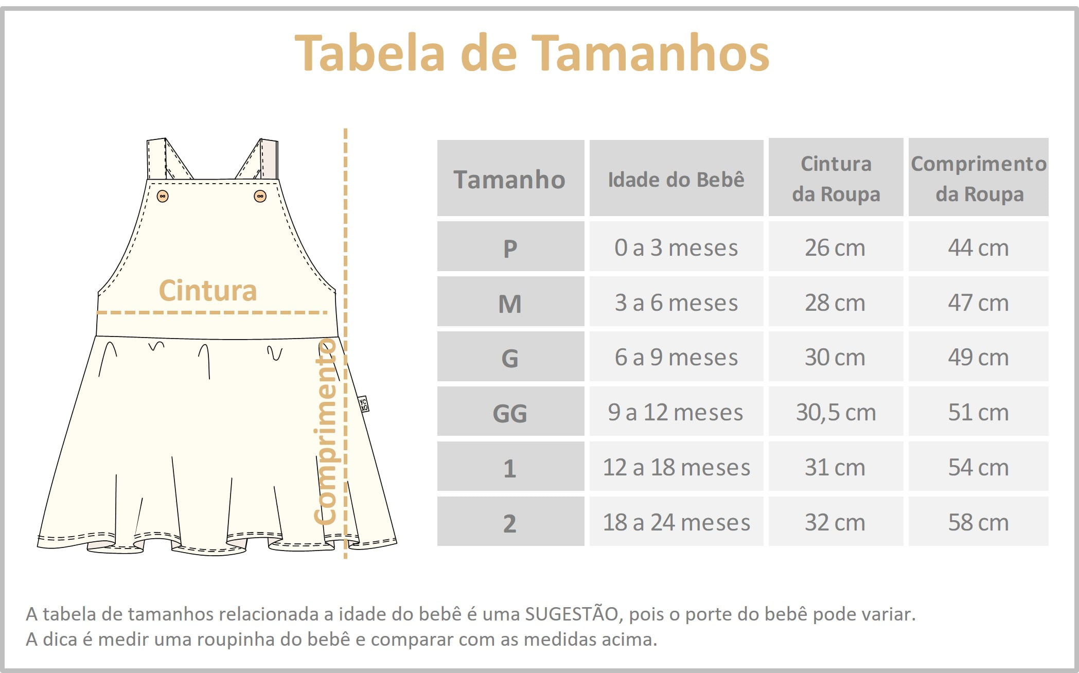 Confira as medidas e escolha o melhor tamanho para seu bebe.